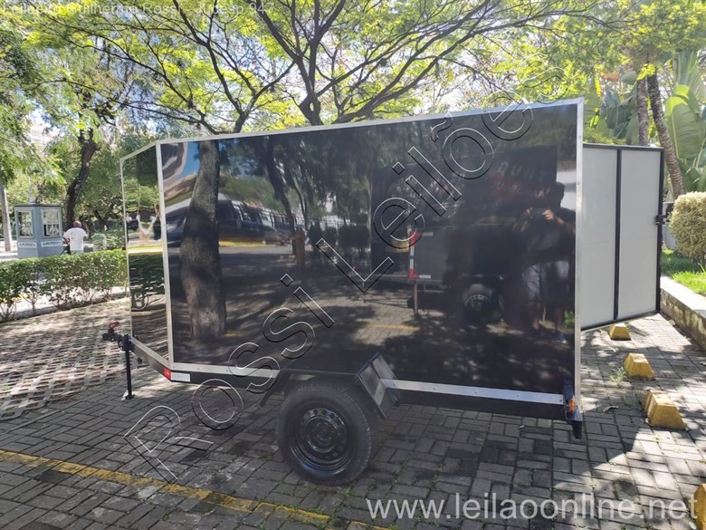 MEDIDAS 2,5M X 1,5M X 1,5M - BICO DIANTEIRO 0,9M - DUAS PORTAS LATERAIS (LD DIRETO E TRASEIRO) COM CHAVES E TRANCA - FABRICADO EM ESTRUTURA RESISTENTE acm, PISO DE MADEIRA IPÊ/ EMPLACADA E DOCUMENTADA