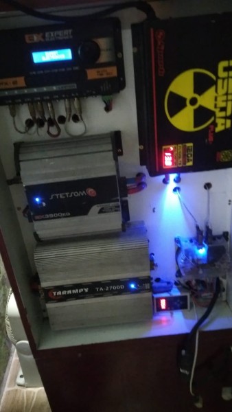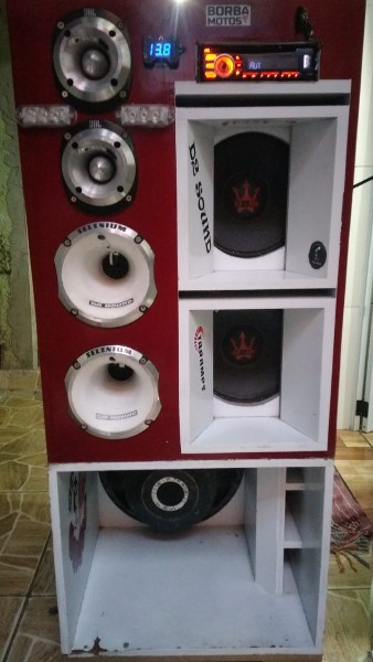 No estado em que se encontra - Itens.. 1 sub de 15 Eros 1350 rms 2 medios grave 1100w REX ORIGINAL 2 super twiter jbl aluminio 2 jarrao jbl. 405 trio Par de strobo e central Mix trax pioneer Bluetooth 1 bateria de caminhão 100ah ebutida dentro dela 1 módulo TARAMPS 2700 RMS 1 MÓDULO STETSON 3500 RMS 1 MÓDULO STETSON 400X1 1 PX2 EXPERT PROFISSIONAL EQUALIZADOR 1 FONTE USINA 120 AH 1 CENTRAL PARA OS LEDS 1 CONTROLE LONGA DISTÂNCIA 4 RODINHAS COM TRAVA FEITA TODA EM MDF FUNCIONANDO ( NO ESTADO) Montagem com cabos de puro cobre de 35mm CAIXA DE ALTA QUALIDADE E DE ALTA POTÊNCIA.. ( CAIXA POTENTE )