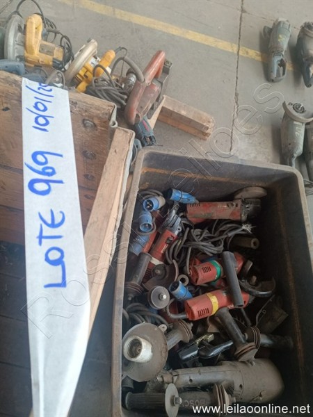 Aprox. 210 Itens: 1 Aparelho Ensaio 220V, 190 Esmerilhadeira 4 e 7'', 5 Furadeira, 2 Martelete, 1 Prafusadeira, 2 Porta eletrodo, 3 retifica, 3 Serra circular 1 Serra Tico Tico (Ref. 969)