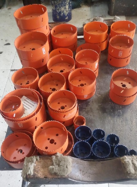 [ VÍDEO ] MATERIAIS DIVERSOS SEM USO SENDO; 51 UN. SERRA COPO MEDIDAS DVS., 15 CAIXAS DE MACHO ( 12 UN. CADA) E OUTROS MATERIAS