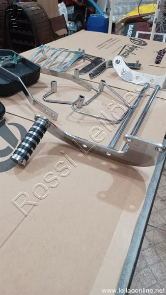 BAGAGEIRO TRASEIRO, PROLONGADOR DE PEDALEIRAS MARCA CUSTON DALAVA'S, ENCOSTO DE GARUPA MARCA V2 CUSTOM, AFASTADOR DE ALFORGES E SUPORTE DE CELULAR OU GPS, CONFORME FOTOS