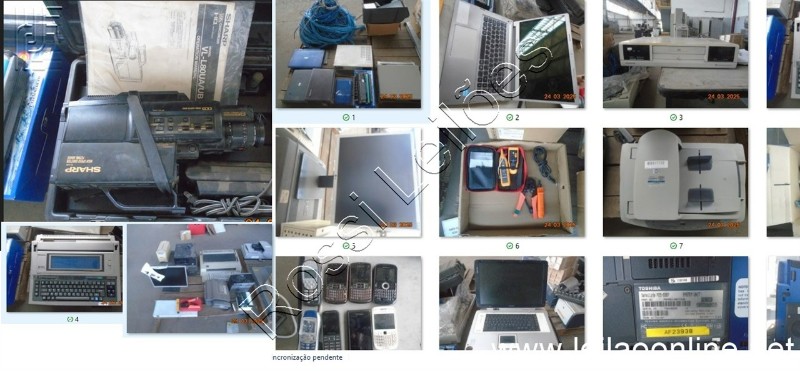 Lote com aproximadamente 1065 itens Antigos de Informática/ Escritório (Alicates, Celulares, Estabilizador, FILMADORA, Monitor, Fax, Máquina de Escrever, Notebooks).
