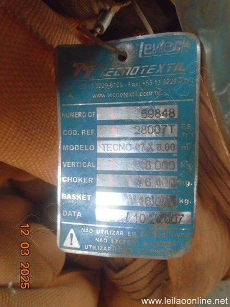 Cinta poliéster Tubular 6ton x 6,0m: 9 unidades;