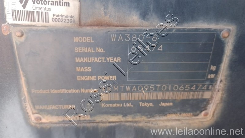 PÁ CARREGADEIRA KOMATSU MOD.WA-380 /209 - ano 2009 - SEM TORQUE - COM MOTOR CUMMINS ELETRÔNICO