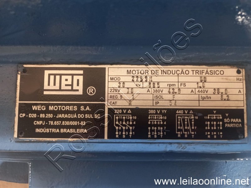 MOTOR ELÉTRICO WEG 885RPM 225 SM TRIFÁSICO - RECONDICIONADO