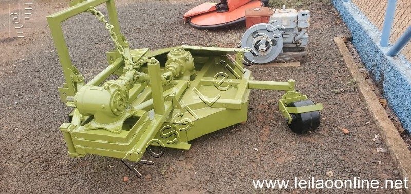 É possível roçar atrás ou lateral de trator. Equipamento desenvolvido para pomares.