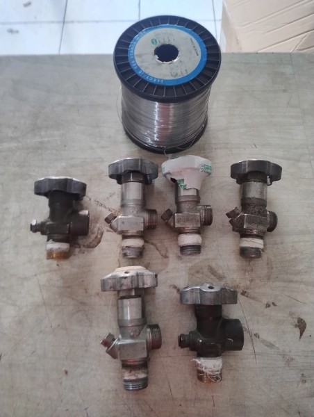 06 peças de válvulas para cilindro de gases e 3 Kg de fio de resistência ocr-25a15 cromo níquel