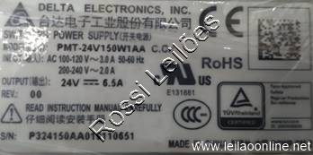 01 UN. PMT 24V 150W 1AA C.C | INPUT: 100/120 VAC - 3.0A / 200/240 VAC - 2.0A | OUTPUT: 24 V - 6.5A | Frequency: 50/60Hz | Power