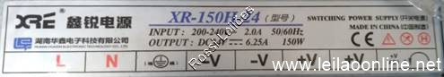 01 UN. XR-150H-24 | INPUT: 200/240 VAC - 2.0A | OUTPUT: 24 V - 6.5A | Frequency: 50/60Hz | Power: 150 W