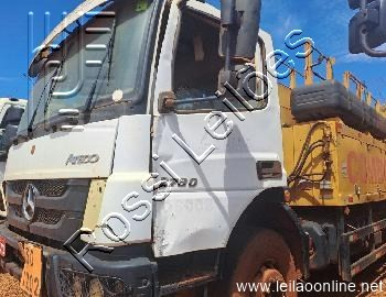 Equipam. em geral com avarias, porta do l/e amassada, baterias obstruídas, farol l/d queimado, intercooler obstruído, carenagem quebrada, interior da cabine com avarias, manivela do vidro quebrado, janela não fecha, será responsabilidade do comprador regularizar a carroceria e placa no documento de transferência, moldura do para-choque danificado, será vendido da forma que se encontra e sem agregados