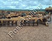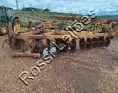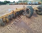 estrutura se encontra com marcas de corrosão, vazamento em cilindros hidráulicos, folga nos eixos, implemento apresenta desgastes, oxidação no equipamento e nos discos de corte, pneus em deterioração sem possibilidade de nova aplicacao, será vendido da forma em que se encontra.
