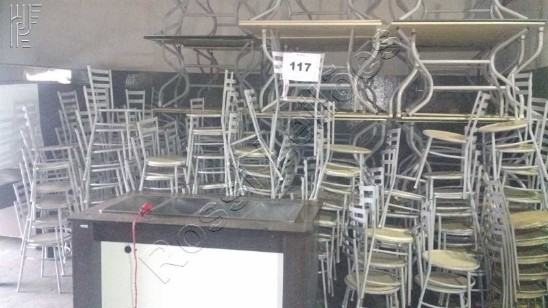 LOTE COM MATERIAIS DE REFEITÓRIO DIVERSOS. MESAS CADEIRAS, ETC.