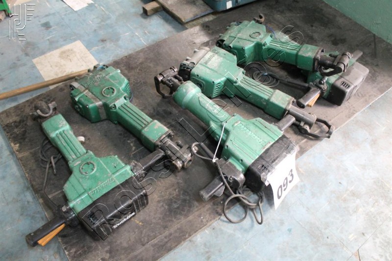 Leilão com alisadoras, compactadores, mangotes, motores, geradores, cortadores, retificadores, guinchos, argamassaderias, compressores, bombas, placas vibratórias, polidoras, martelos rompedores, furadeiras, lixadeiras, compressores, caixas de ferramentas diversas, armários, bancadas peças e equipamentos diversos.