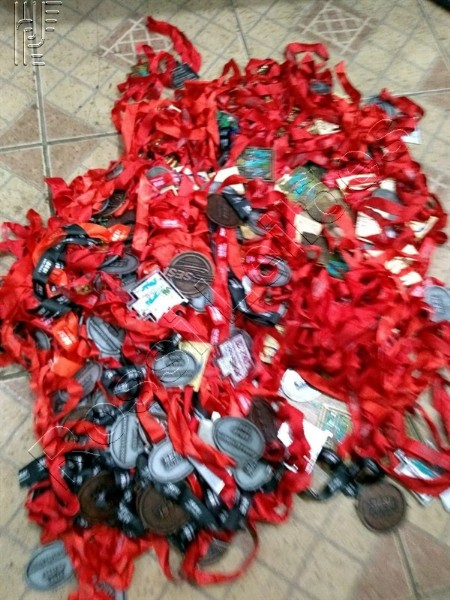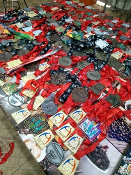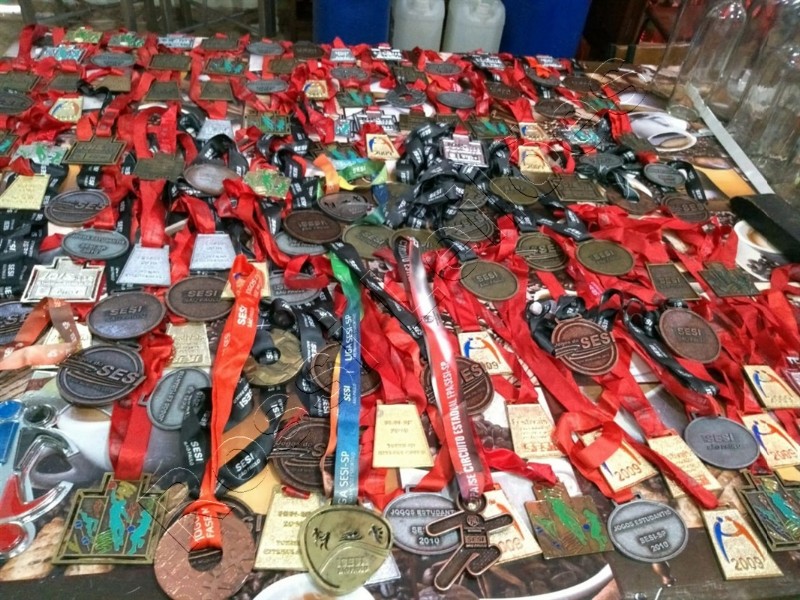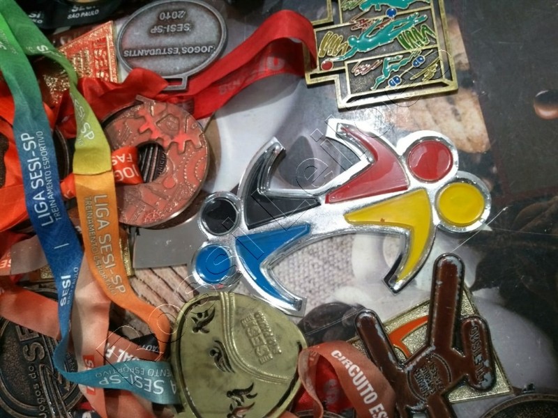 LOTE C/ APROX. 400 MEDALHAS DE METAL E BRONZE, VÁRIOS TAMANHOS E MODELOS, C/ APROX. 30 QUILOS. (SEM USO)