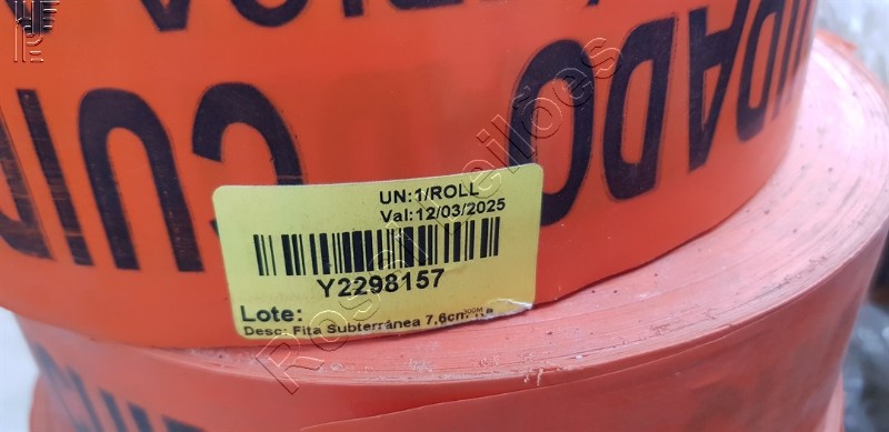 41 un. de FITA LARANJA C/100 MTS ; 64 un. de FITA LARANHA C/ 50MTS ; 13 un. de FITA AMARELA LARGA C/ 500MTS ; 7 un. de FITA ZEBRADA PRETA/AMARELA C/ 200MTS ; 6 un. de FITA LARANJA LARGA C/ 300MTS ; 8 un. de FITA SUBTERRÂNEA LARANJA C/300MTS ; 3 un. de FITA SUBTERRÂNEA VERDE C/300MTS ; 3 un. de FITA SUBTERRÂNEA AMARELA C/300MTS ; 9 un. de TOROFITA ISOLANTE PARA TUBULAÇÃO ; 7 un. de ROLO DE FITA PARA ISOLAMENTO DE ÁREA ;