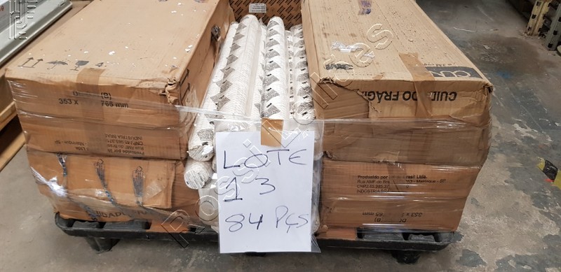 Quantidade aproximada. Caixas e palets não estão inclusas no lote. No estado em que se encontra. Não serão aceitas reclamações posteriores.