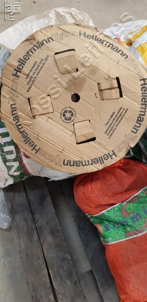 6 un. de SACOS CONTENDO ORGANIZADOR DE CABOS ; 1 un. de BOBINA DE MANGUEIRA ; 1 un. de ROLO PLÁSTICO AZUL .