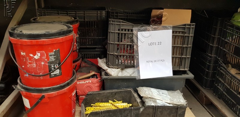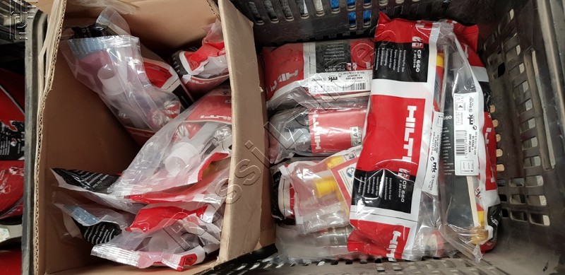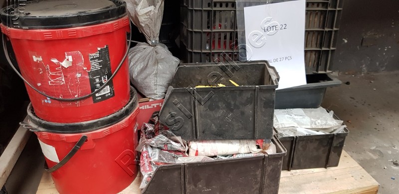 4 un. de LATA HILTI FIRESTOP 17,5KG marca HILTI ; 1 un. de CX SPOLETA ; 16 un. de PTE HILTI CP660 (203 518) marca HILTI ; 1 un. de CX PREGOS APROXIMADAMENTE 200KG ; 1 un. de PRESILHA HILTI 6 SACOS C/ 250PÇS ; 4 un. de CX HILTI .