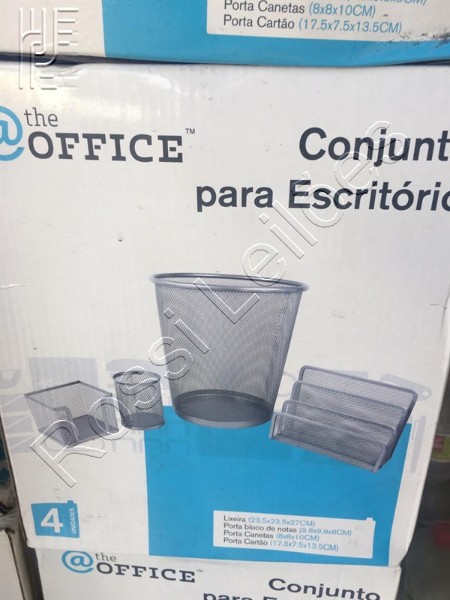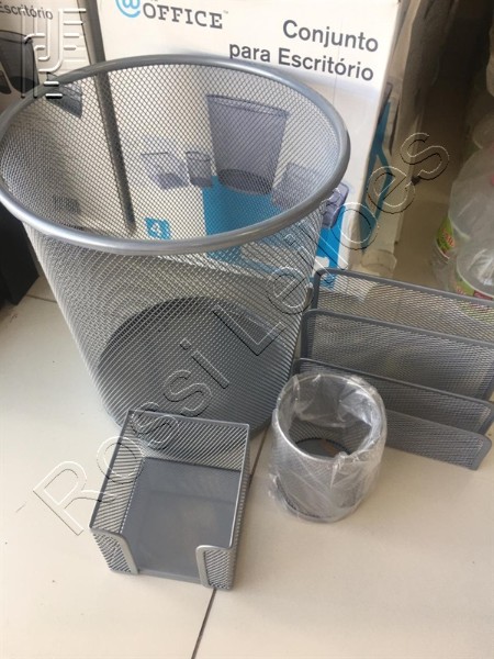 4 peças: lixeira, porta bloco de notas, porta canetas e porta cartão
