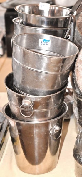Lote com: 8 Baldes de gelo inoxidável. Diâmetro médio 21 cm. com 3 pegadores