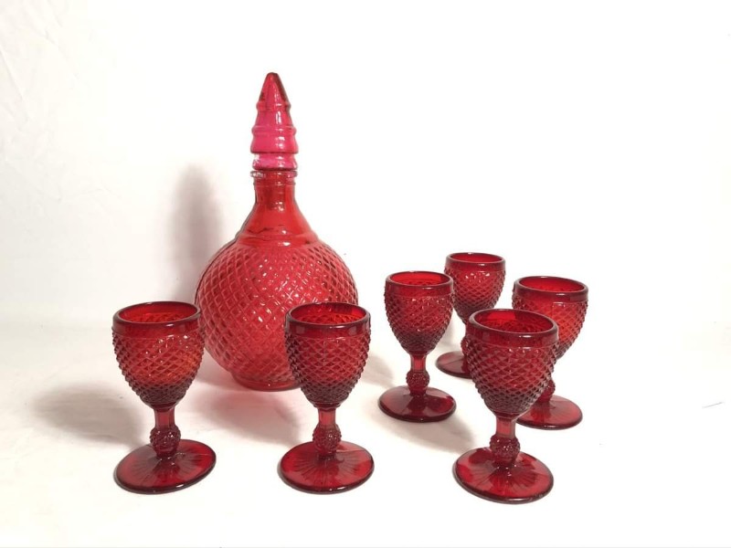 Licoreira com taças em vidrão bico de jaca - 25.5 cm jarra - 10cm copo