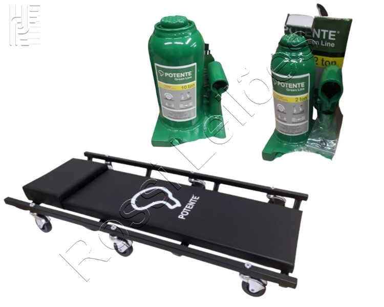 ( 3 itens) 2 macaco hidráulico sendo 1 de 2 toneladas + 1 de 10 toneladas + 1 carro esteira para mecânico. Produto sem uso, na caixa.