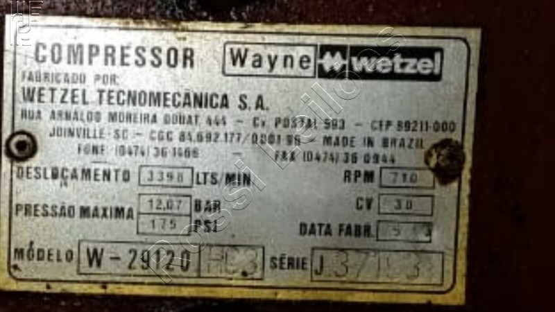 Compressor. Modelo W-29120. Motor 30 CV. Pressão máx: 175 PSI