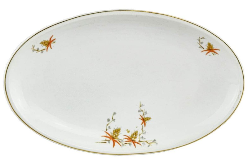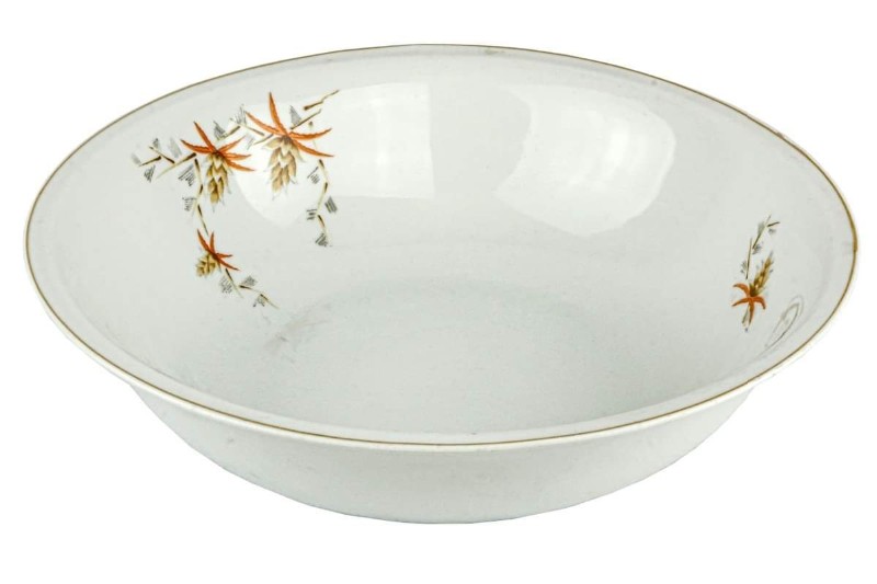 Lote com: 30 Pratos Fundos, 3 Travessas Oval 2 tigelas em marca porcelana rela são Paulo - fina porcelana branca, filetados à ouro, Diâmetro: 22 cm.