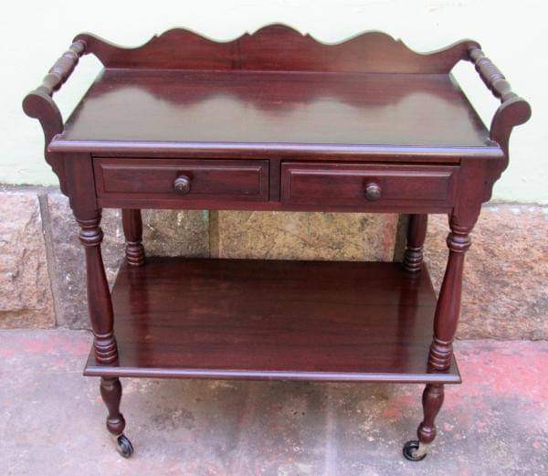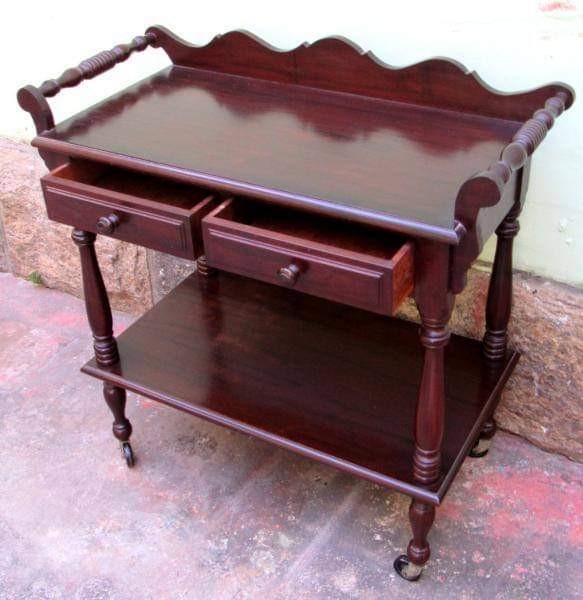 carrinho de chá, madeira maciça, torneadas, prateleira, duas gavetas Alt:80 cm; larg: 80 cm; prof: 41 cm