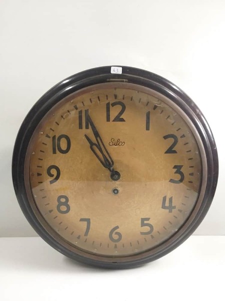 Relógio Olho de Boi - Silco, em madeira, vidro bombê, completo, diâmetro 40 cm, não testado