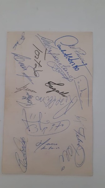 Exclusivo peça unica Cardápio da seleção brasileira de 1970 autografado num evento qu foi realizado no Rio de Janeiro nesta data do cardápio.13 cm de largura e altura 23cm aviado por historiador