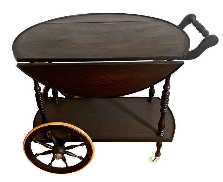 Carrinho de chá em madeira nobre, com tampo movível, 75 cm x 82 cm