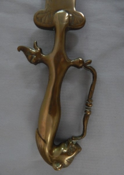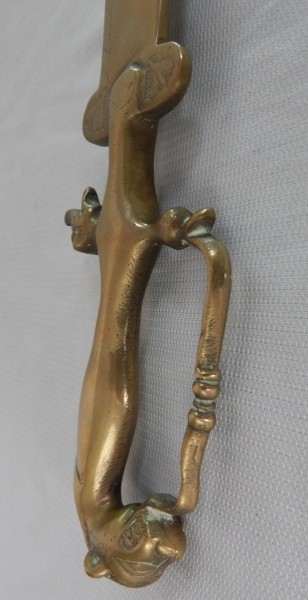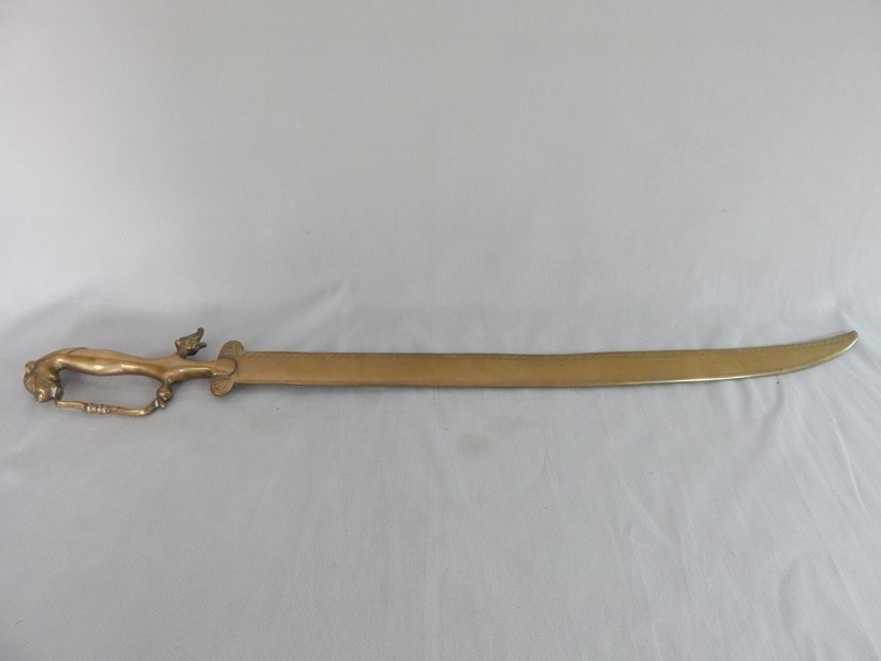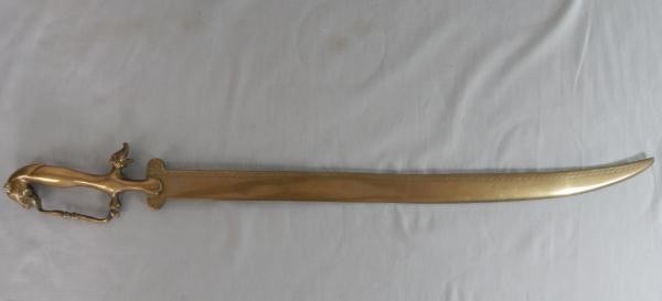 Espada importada indiana em bronze dourado e lâmina cinzelada, 69 cm, pesa mais de 1 quilo