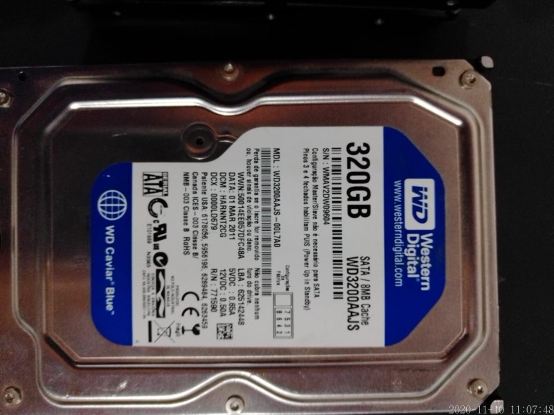 Lote com: HDs para Pc 2 de 320 gb, 6 HDs de 500 gb e 2 de 1 TB