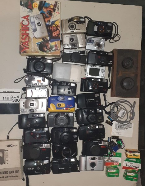 28 máquinas fotográficas antigas, filmes e etc