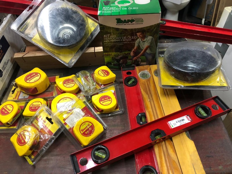 Aprox.20 itens ferramentas diversas... trenas, nível, escova de aço