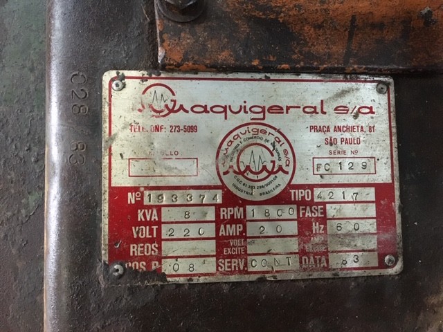 Gerador a Diesel, capacidade: 8 KVA, 1800 RPM, Saída: 127V/230V e 230V trifásico