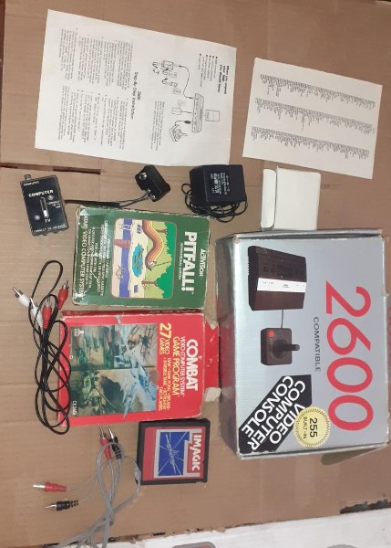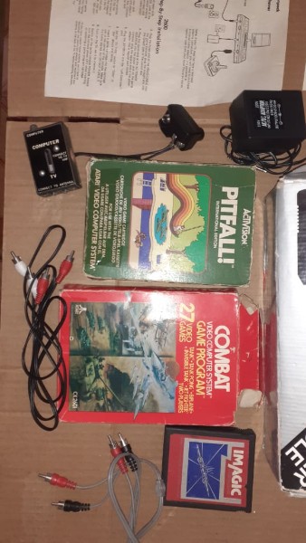 Atari 2600 com cartuchos e acessórios