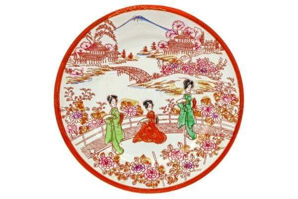 Lote com: 4 Pratos para Bolo importados Orientais, em porcelana branca casca de ovo, pintados à mão, Diâmetro: 17 cm
