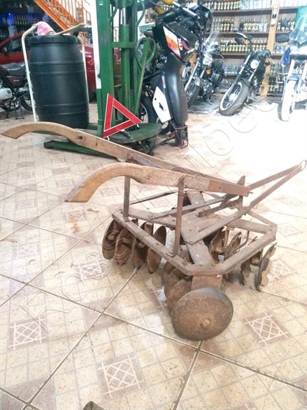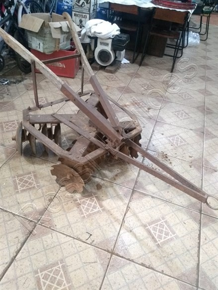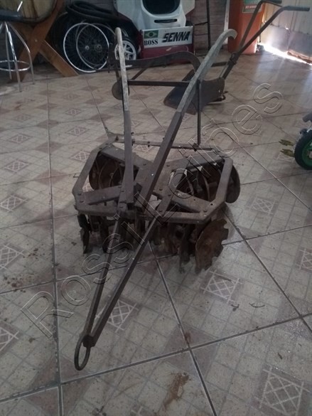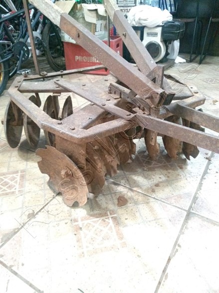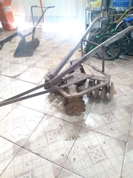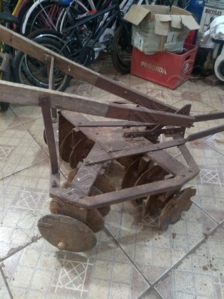 Mini Grade Antigo de Tração Animal. Fabricado a aprox. 80 anos. C/ 16 discos Original para pequenos cultivos. RELÍQUIA e em perfeito funcionamento ou para decoração.