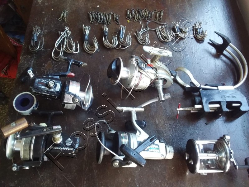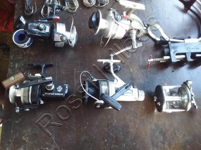 1 Molinete Daiwa mod 9000 1 Molinete Daiwa mod as 9050 1 Molinete Daiwa mod 55 4000 1 Molinete Daiwa mod dx 5000 1 Carretilha grande 1 Suporte / barco para vara 87 Anzóis Grandes 36 Giradores 5 Kg de Chumbada Grande 5 Varas (1 de 2.60, 2 de 2.30 e 1 de 2.20 1 de 2 mts) 1 Passados articulado.