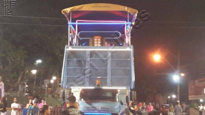 Avance sobre a cabine onde estão montadas caixas de som dianteiras;