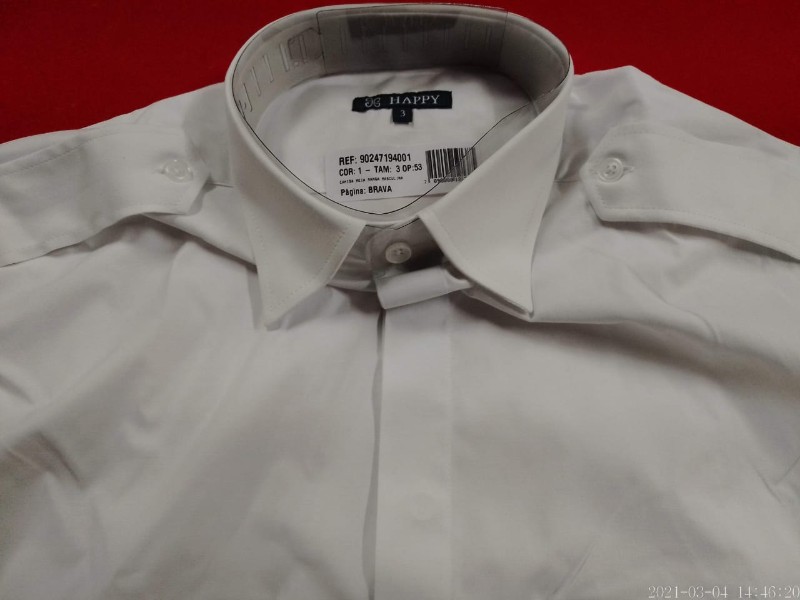 Lote com: 30 unidades de CAMISA MANGA CURTA BRANCA TAMANHOS 3 E 4