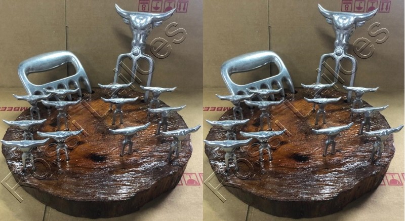02 CONJUNTOS PARA CHURRASCO DE 14 PEÇAS E SUPORTE (TOTAL 28 PEÇAS E 02 SUPORTES)