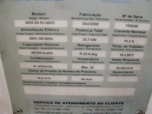 Geladeira industrial água gelada Chiller 60000 kcal 20 TR, codigo pateo 511 , local de visitação e retirada São Paulo - SP