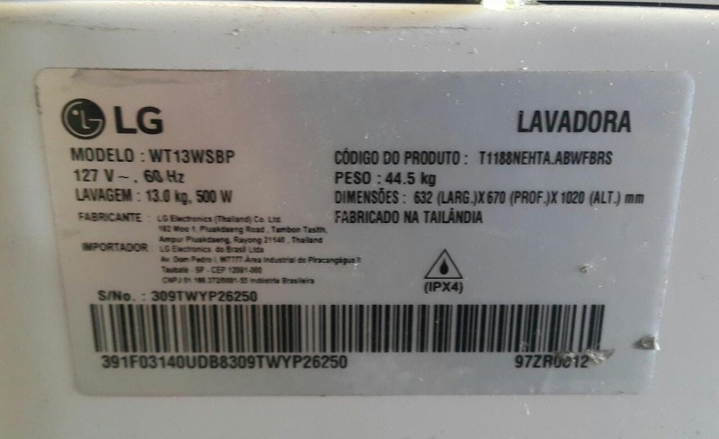 Máquina De Lavar Lg Turbodrum Smart Inverter 13Kg 127V