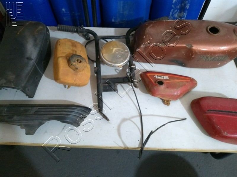 LOTE C DIVERSAS PEÇAS ANTIGAS DE MOTOS, SENDO TANQUE DE YAMAHA RX 80cc, TAMPAS LATERAIS DE YAMAHA RX E CB 350 , SUSPENSÃO DIANTEIRA E BANCO DE MINI MOTO ANTIGA MINI PANTER, TAMPA LATERAL DE MONARK SACHSE OUTRAS.