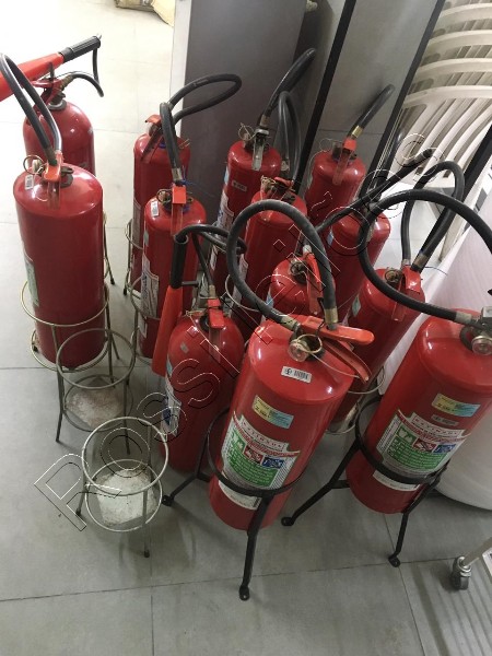 13 extintores diversos carregados com suporte alguns vencidos