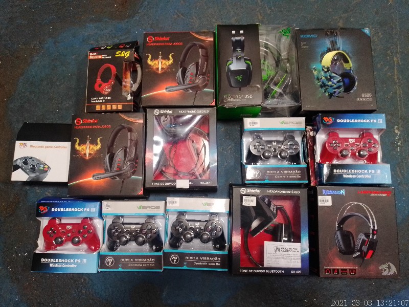 Lote com: 20 unidades. FONES PARA GAMER E JOYSTICK NA CAIXA DIVERSOS