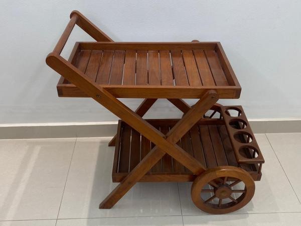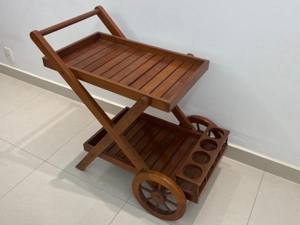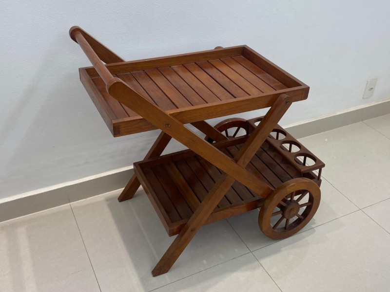 Carrinho para bebida em madeira nobre. 84x87x53 cm